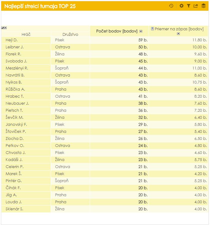 Štatistiky zápasov po tímoch / Match statistics by teams