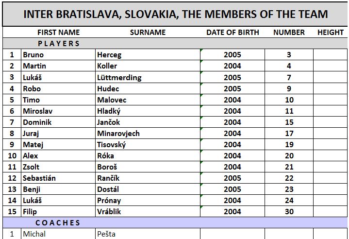 Tímy na turnaji / Teams