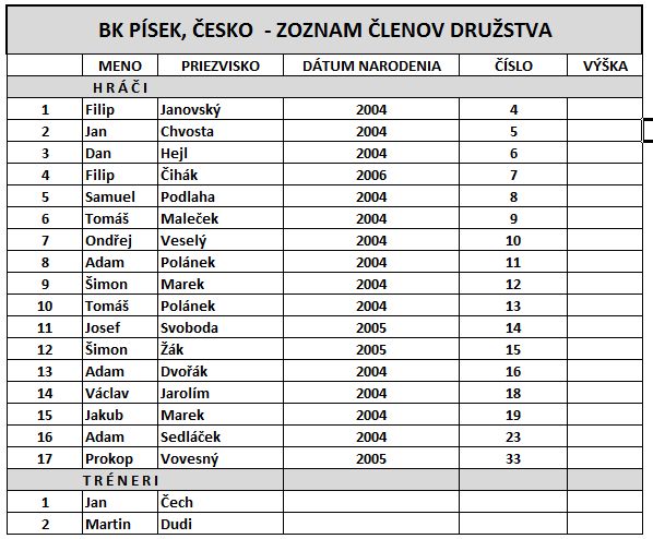 Úvodná stránka / Home > Tímy na turnaji / Teams > Sršni Písek